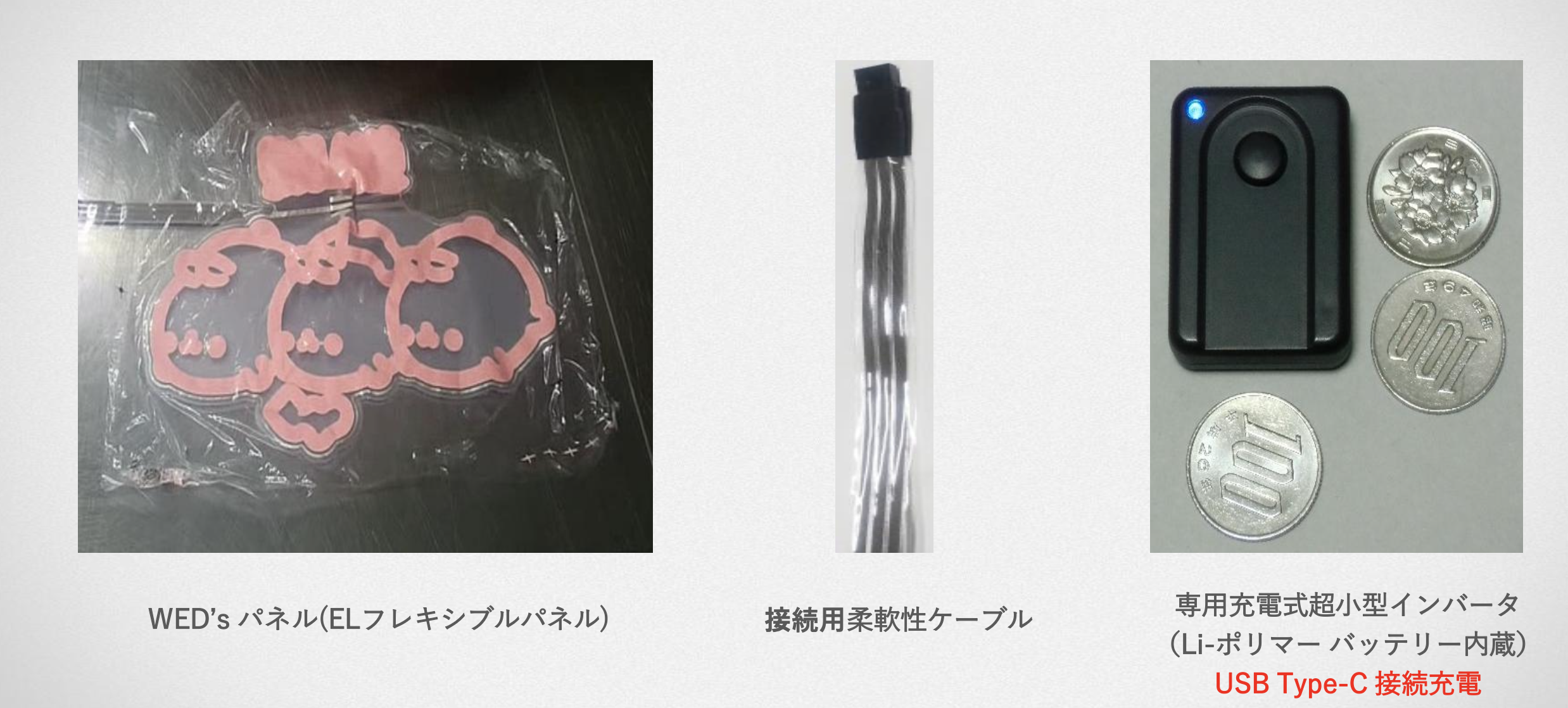 “身につけられるEL”=WED’sEL(Wearable EL Display) です。